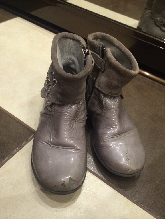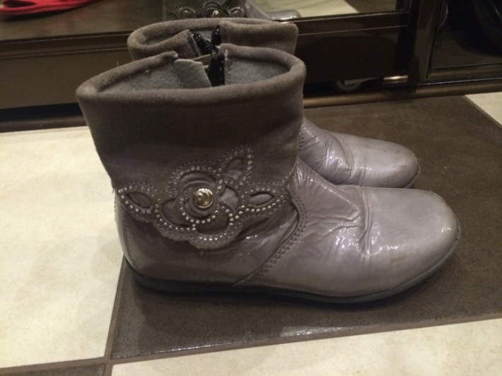 2. . Осенние сапоги. Нат. кожа, замша - цвет серый лак. мысы чуть сбиты. Произ-во Италия Размер: 27 но маломерят, нам на 27 малы Цена: 300
