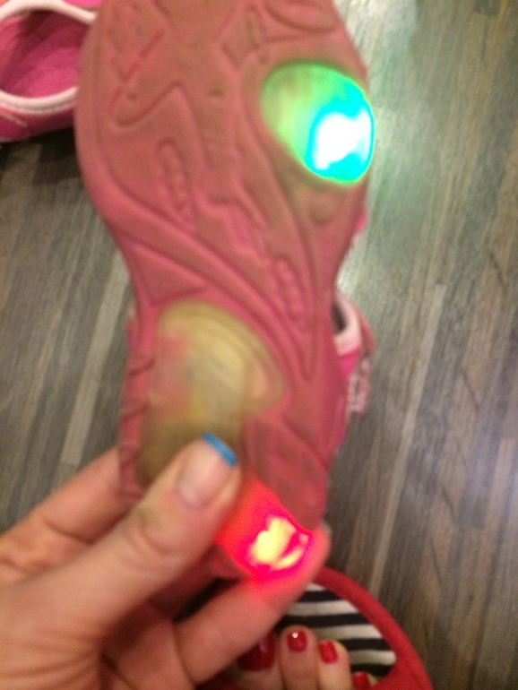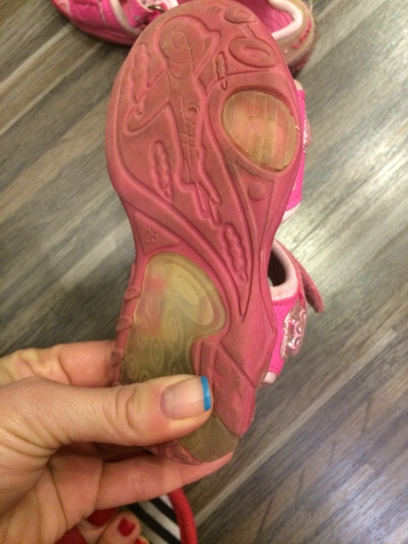 7. Босоножки шлепки покупали для моря Цвет: розовый Размер: 25 Цена: 150 С подсветкой, работает только на одном ботинке