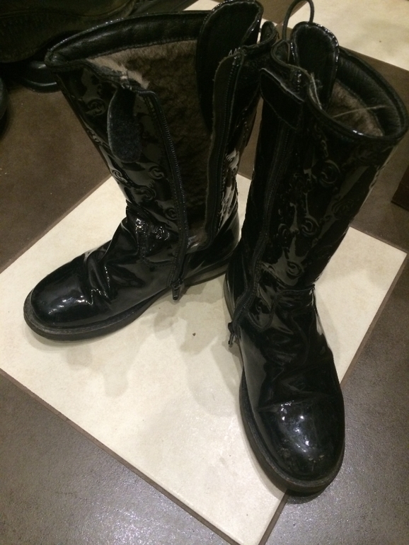3. Зимние лаковые сапоги на меху Нат. кожа Размер: 27 По подошве 19,5 см Цена: 1490