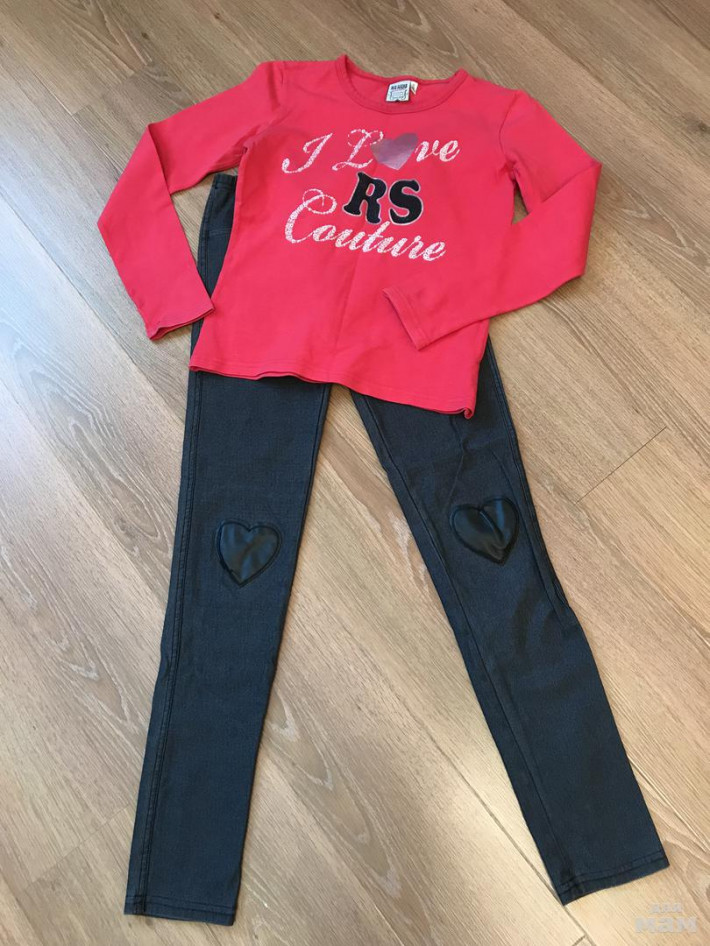 серые легенсы Колзедония и красная кофта Ред Саунд р.152 --800р.
