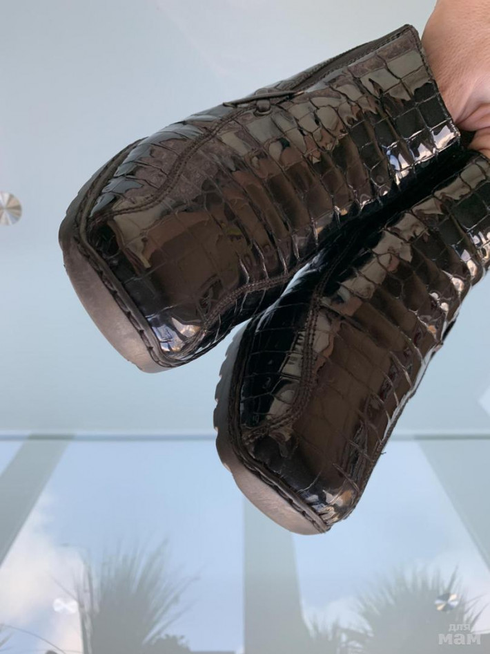 Натуральная лаковая кожа (под рептилию) , внутри натуральная шерсть.