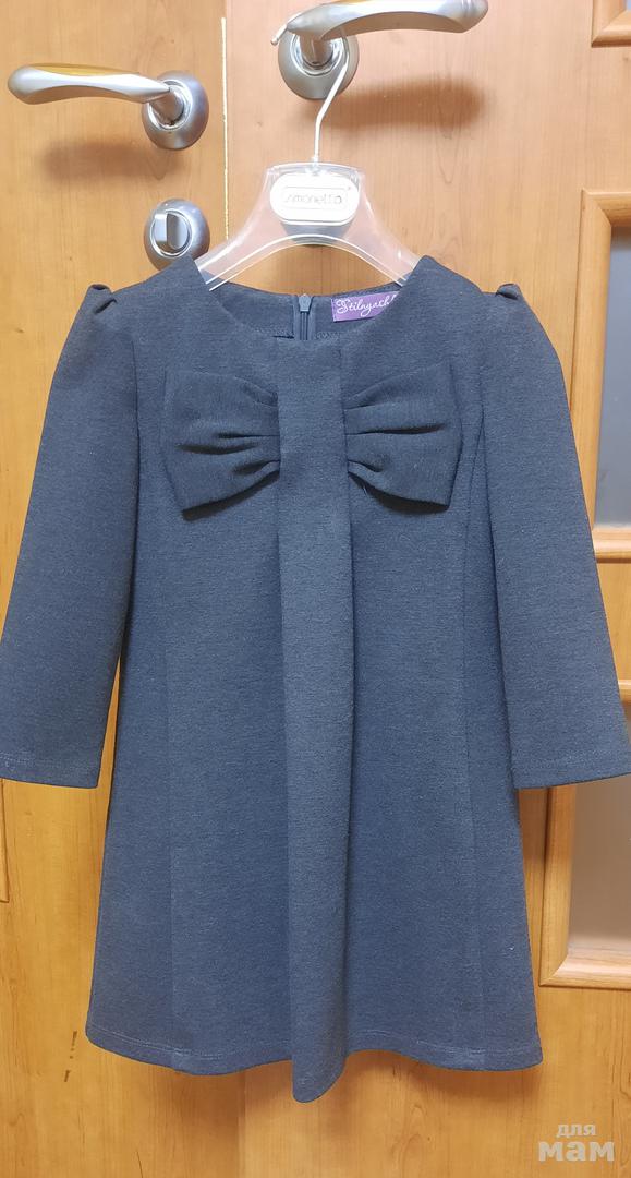 Утепленое платье Стильняшка р.122, серенькое с бантиком. Для садика идеально. Stilnyashka.