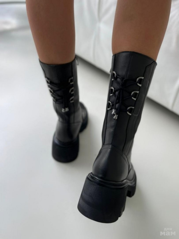 Стильные высокие зимние ботинки из натуральной кожи. Внутри мягкая подкладка из эко меха и анатомическая стелька, обеспечивающие комфорт на протяжении всего дня. Грубая подошва добавляет трендовости модели и пару сантиметров роста ;) утолщенная тракторная нескользящая массивная подошва переходит в широкий устойчивый каблук.