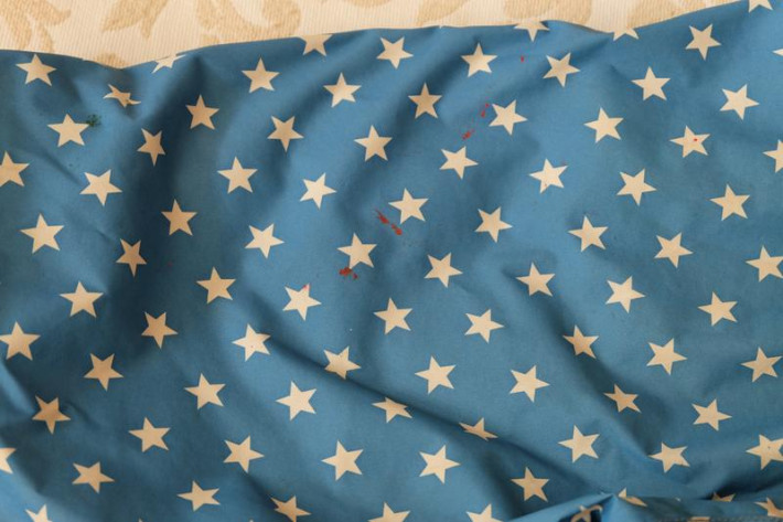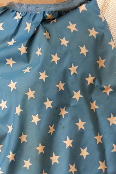 Изменение цвета штанин и попы - на фото видно по звёздам, на ребёнке не особо видно)