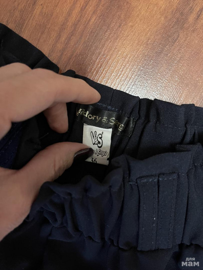 Плотная ткань, состояние отличное. К ним есть новый пиджак. Цвет костюма синий.