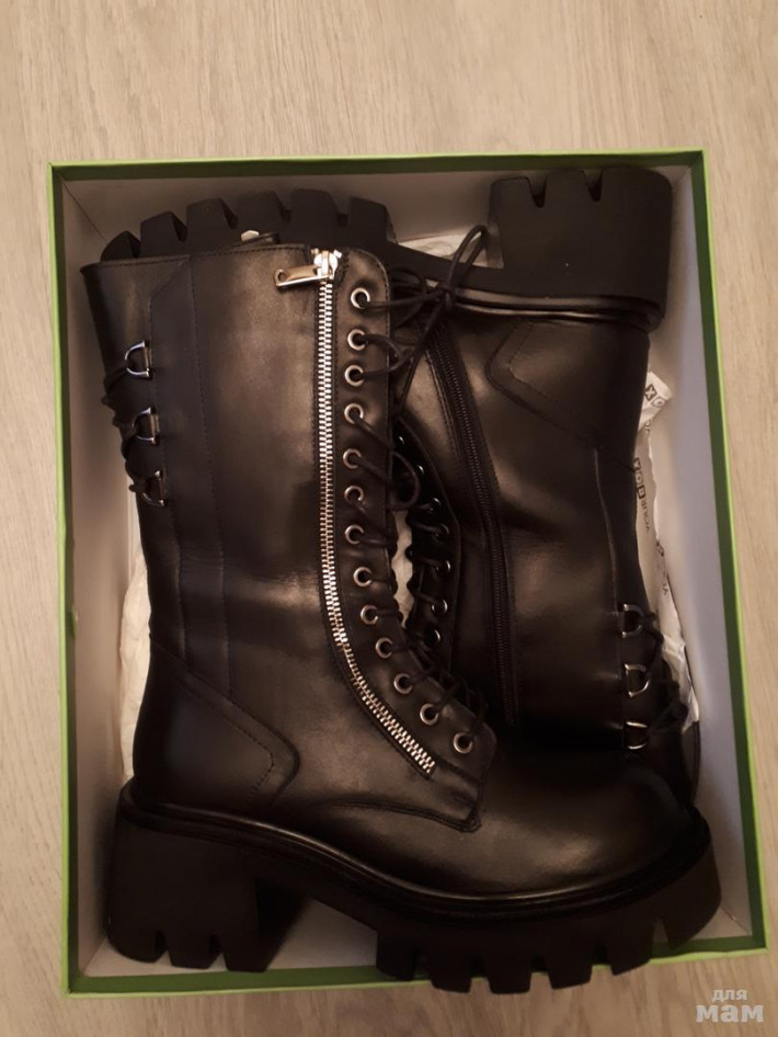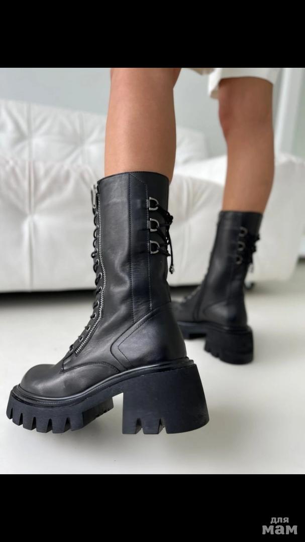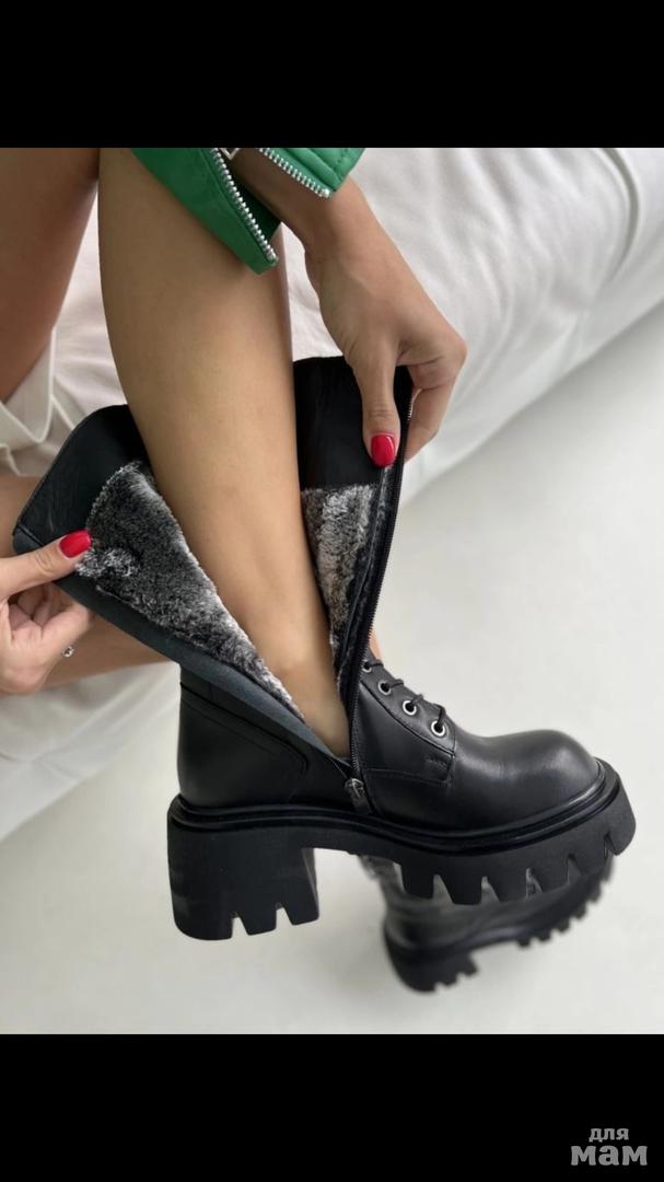 Стильные высокие зимние ботинки - берцы из натуральной кожи. Внутри мягкая подкладка из эко меха и анатомическая стелька, обеспечивающие комфорт на протяжении всего дня. Грубая подошва добавляет трендовости модели и пару сантиметров роста;) утолщенная тракторная нескользящая массивная подошва переходит в широкий устойчивый каблук.