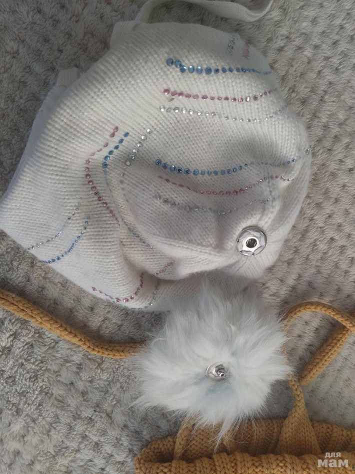 Зимняя шапочка Chobi на хлопковой подкладке. Стразы. Состав ткани на фото указан.
