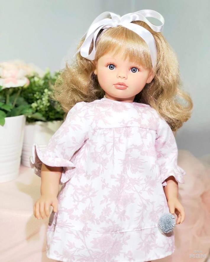 Куколка, ростом 57 см, выполнена из высококачественного винила, а тело - мягконабивное.