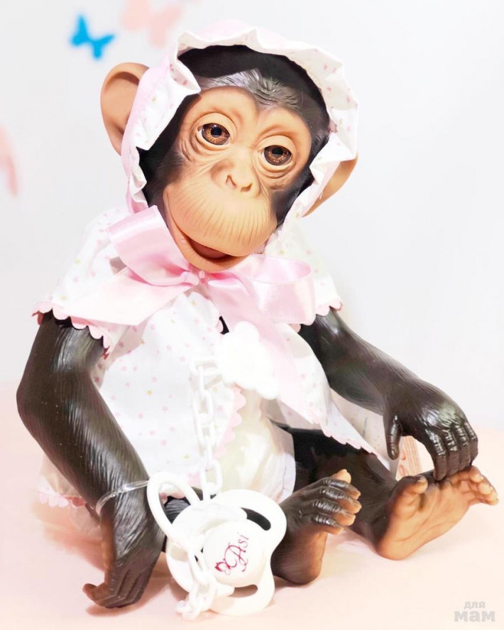 Встречайте, абсолютно новую линейку в кукольном доме ASI, серия "Animales Reborn", реалистичные виниловые питомцы. Шимпанзе Лола сплошное очарование! Выполнена полностью из премиального винила с использованием гипоаллерных красок. Ручная работа! Рост 32 см. Детально проработаны все части тела, ручки, ножки, голова вращаются, шимпанзе может сидеть. Отдельное внимание стоит уделить комплектам! Дизайнерские наряды, как всегда, выше всяких похвал. Выполнены из высококачественных материалов. Шимпанзе Лола одета в красивую рубашку и чепчик с рюшами на атласных завязках. В комплекте фирменная пустышка с держателем и памперс.
