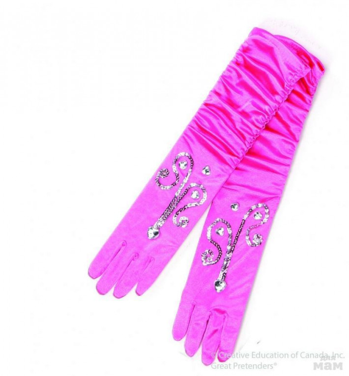 Эти изящные перчатки темно-розового оттенка, декорированные сверкающими серебряными блестками и драгоценными камнями в форме сердец, гарантируют любой принцессе восхищенные взгляды!