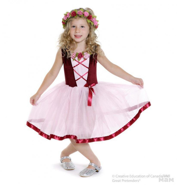 Очаровательное легкое платье нежного розового оттенка с контрастной бордовой отделкой идеально подойдет для образа цветочной феи.