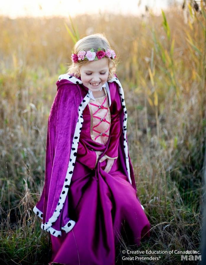 В этом торжественно плаще насыщенного пурпурного цвета с меховой отделкой Вы будете чувствовать себя настоящей королевой в любой ситуации!