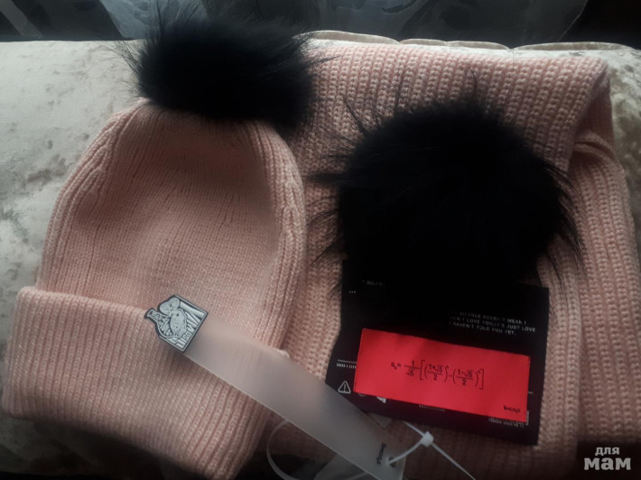 Комплект шапка + шарф. Состав: Акрил 85% шерсть 15%. Помпоны на шапке и шарфе из натурального меха енота. На шапке помпон пришит, на шарфе пристегивается на пуговицу.