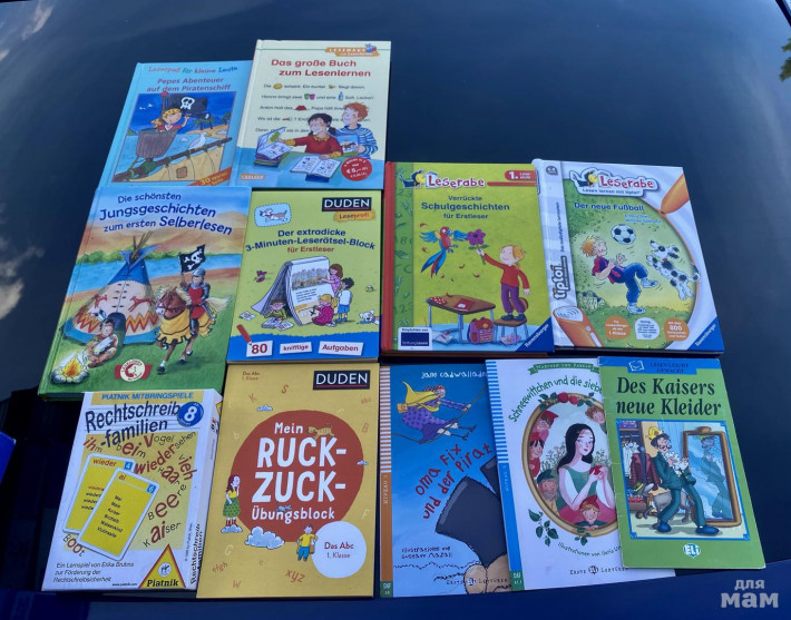Все, для начала изучения немецкого языка: литература и игры. Интерактивные Книги с ручкой! Книжки с CD дисками. Много тестовых игр. Отлично подойдёт начальным классам в школах с углубленным изучением немецкого языка. Комплектом 6500