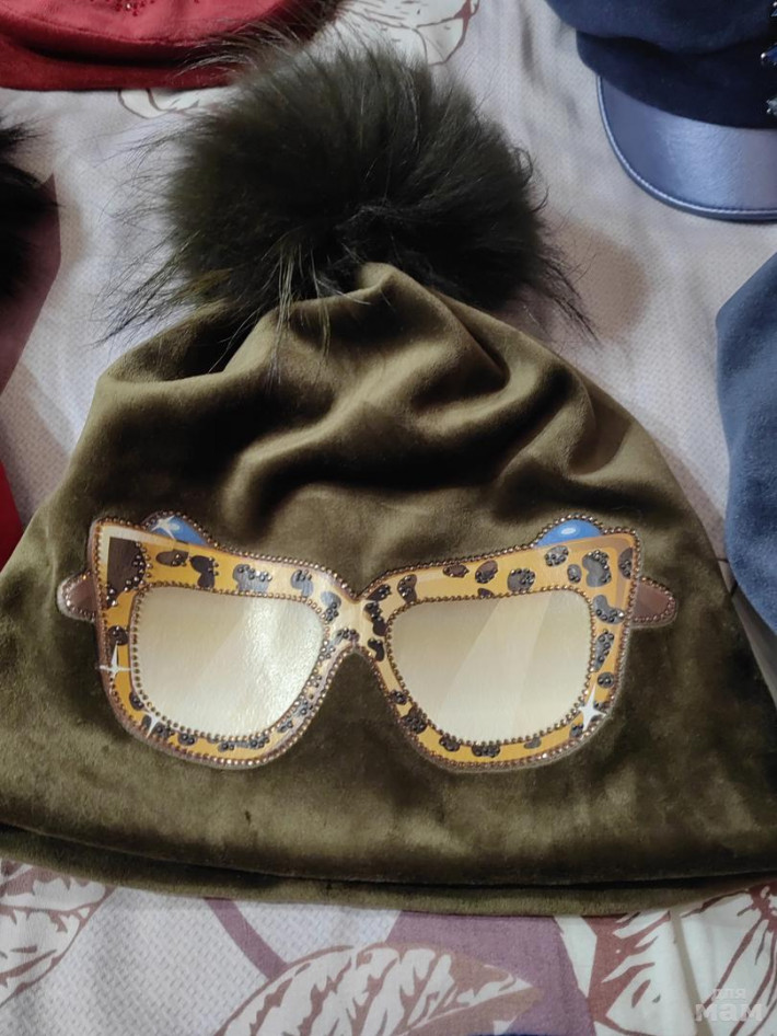 Шапочка велюровая на флисе с помпоном. Маркировка 54-55. 1000 рублей