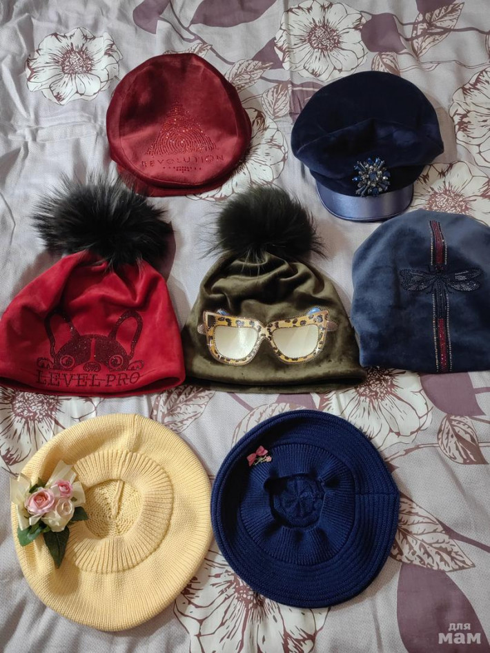Шапочки демисезон. Верхний ряд кепки от Левел про. Средний ряд шапки от Левел про. Нижний - береты от Dan&Dani. Состояние отличное у всех.