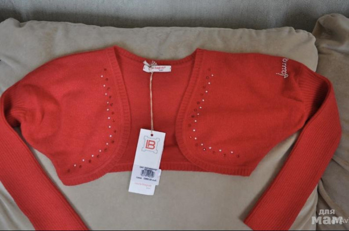 Новое шикарное болера итальянской фирмы laura biagiotti, урагено стразами. Состав 100% шерсть. Маркировка 4 года, но подойдёт на возраст от 4-7 лет. Рукав спущенный. Длина 32 см. Длина пр спинке 22 см, ширина 32 см. Продаю дешевле, чем покупала