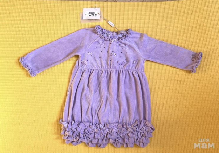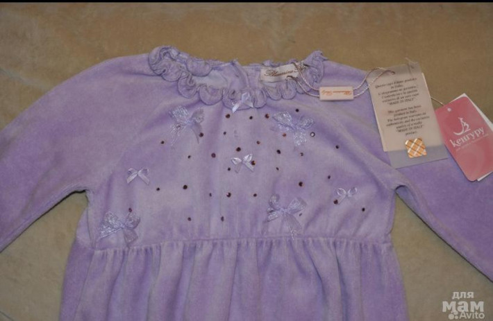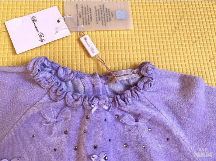Нарядное, красивое платье , Италия Blumarine baby. Маркировка 18-24 мес. Цвет фиолетовый или сиренвый, сзади на пуговицах, камни сваровски, материал как велюр, очень приятный к телу. Смотрится бомба. Одели 1 раз на день родления, некуда было носить. Так что состояние новой вещи. Покупала за 9 тыс. торга нет. Длина 46 см, полуобхват груди 27 см. Рукав от горла до манжеты 32 см.
