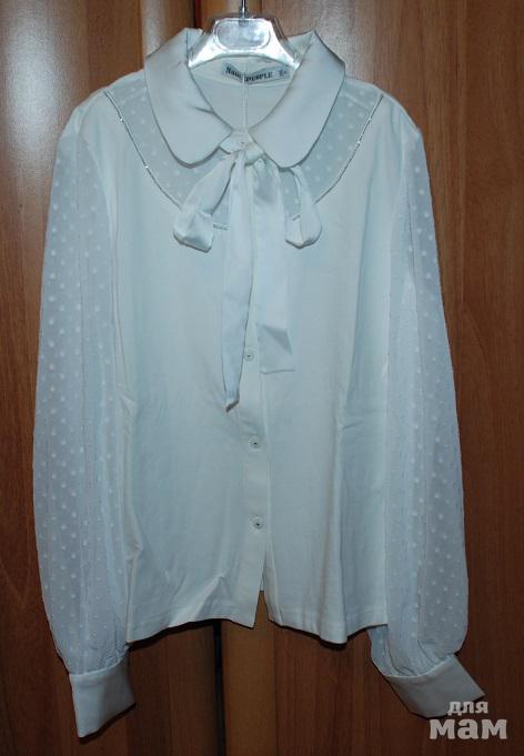 Блуза трик.дл.рук "Кант с цепочкой на кокетке", молочный, 11 лет (146 см)