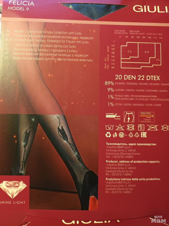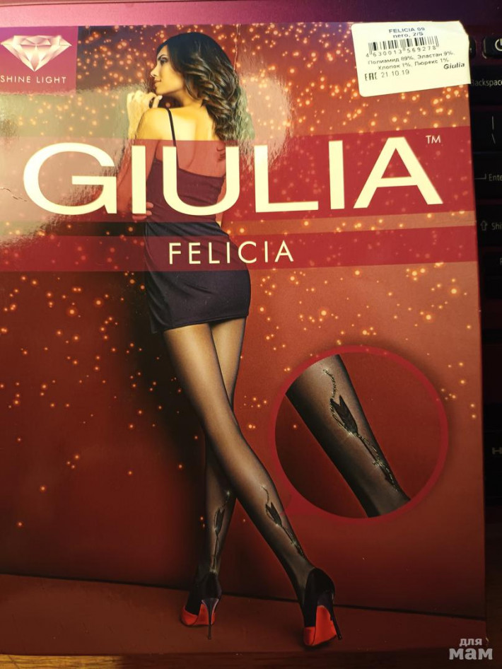 - Модель Felicia (фото 2, 3) плотность 20 ден, с широким комфортным поясом, гигиенической ластовицей и усиленным плоским швом. Голень модели декорирована узором "стрела". В наличии размер 2 (S) черные - 2 шт.