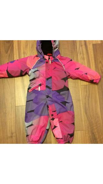 Зимний комбинезон 86+6 после одного ребенка в хорошем состоянии, попа и колени не в идеале, но потерлись немного швы между ног, в носке не видно и манжеты от того, что сверху варежки одевали! утепленные Варежки kerry в подарок при покупке!