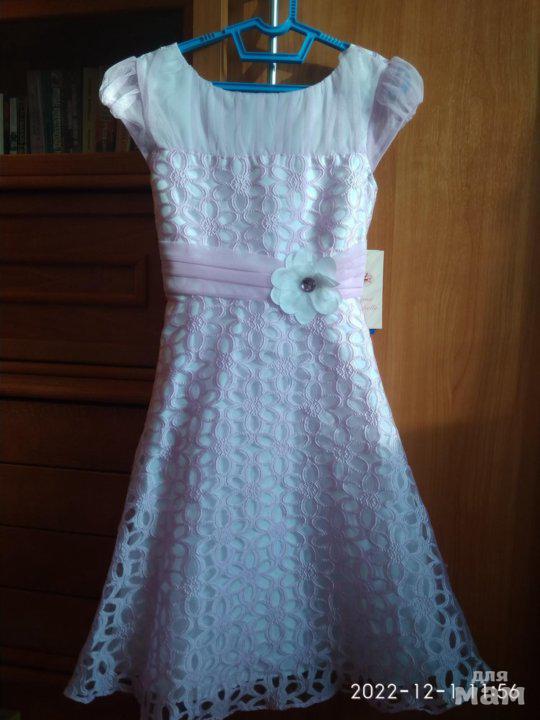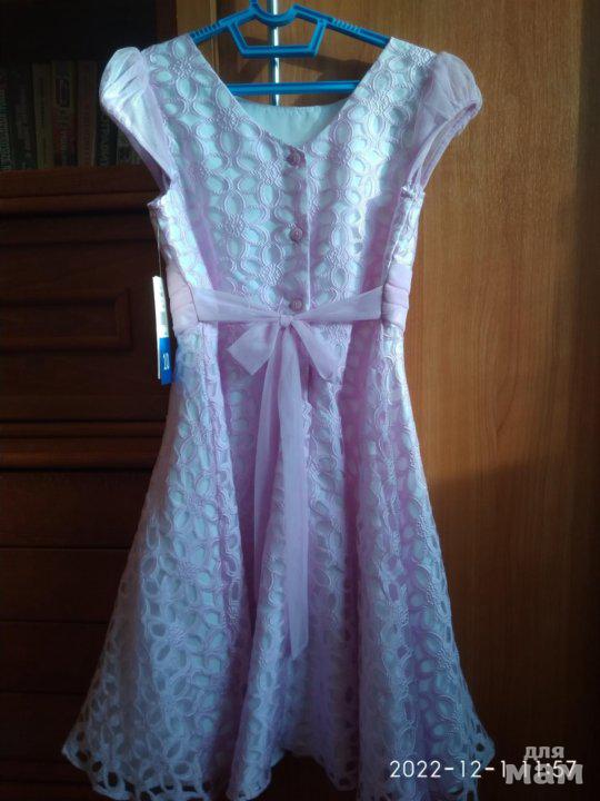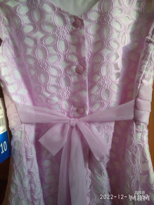 Абсолютно новое красивое платьице приятного розового цвета, с этикетками. Маркировка 10 лет. Произведено во Вьетнаме. Двойной подклад под юбкой. Длина от плеча 83 см, ширина между подмышками 45 .