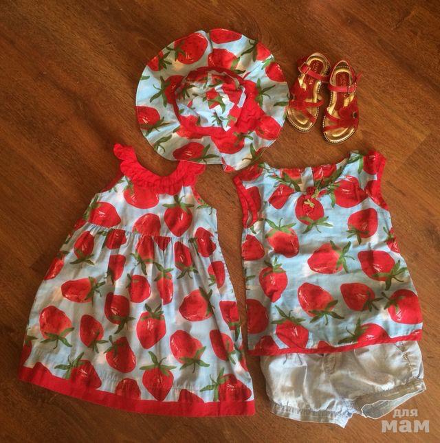 220. Gymboree любимые клубники. Состояние отличное. Платье 3 года, панамка 2-3, туника 2, но все хорошо до 110. Цена за 3 вещи 1800