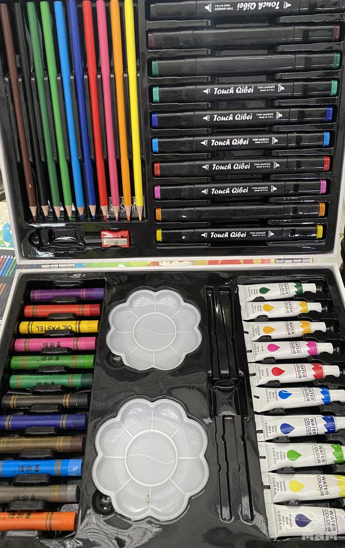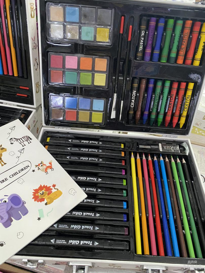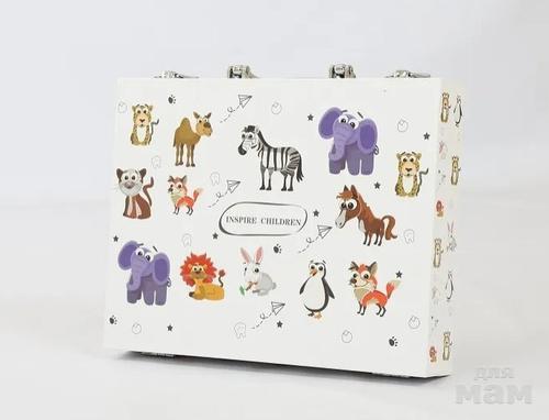 Набор Юного художника для творчества и рисования в белом чемодане, на котором нарисовано герои мультфильмов. Акварель/Гуашь. В комплекте блокнот с животными. 1180 р