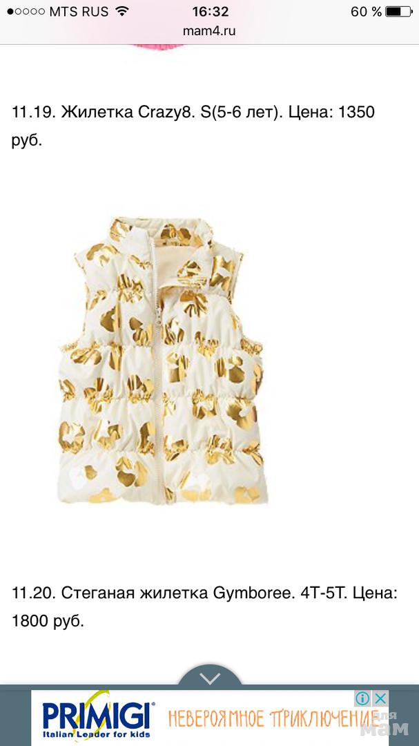 11.20. Стеганая жилетка Gymboree. 4Т-5T. Цена: 1800 руб.