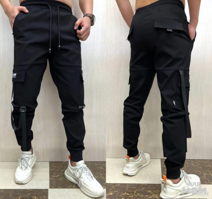 Черные джоггеры с карманами и декоративными элементами, очень приятный качественный материал! СВ