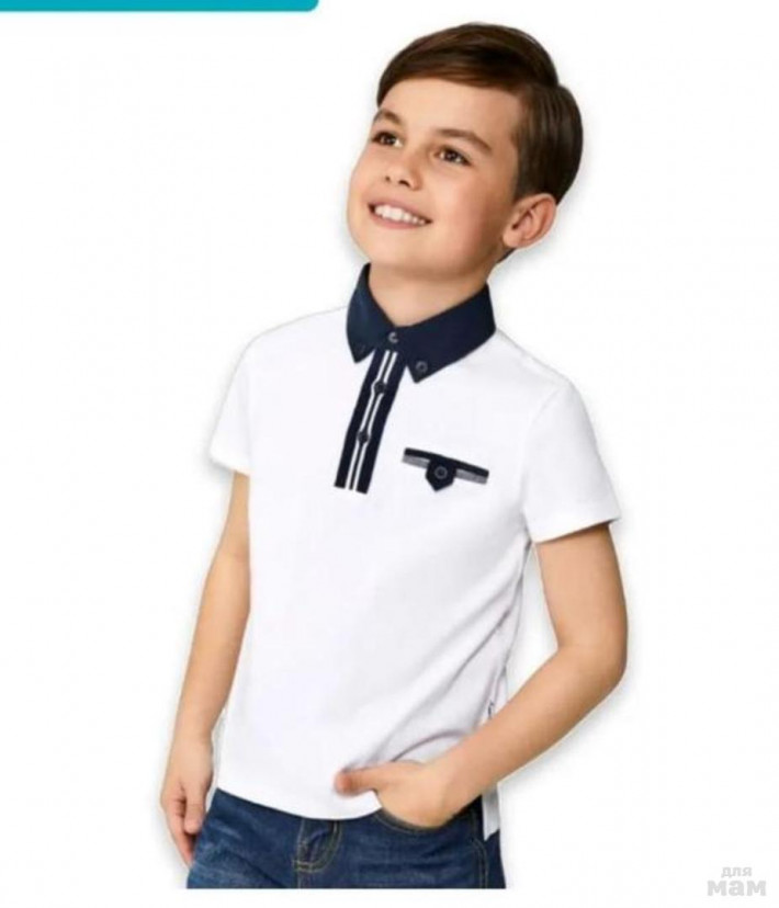 Рубашка "BestKidsClub" с коротким рукавом, белая. Шикарное качество! Хлопок 60%, полиэстер 40%. СВ