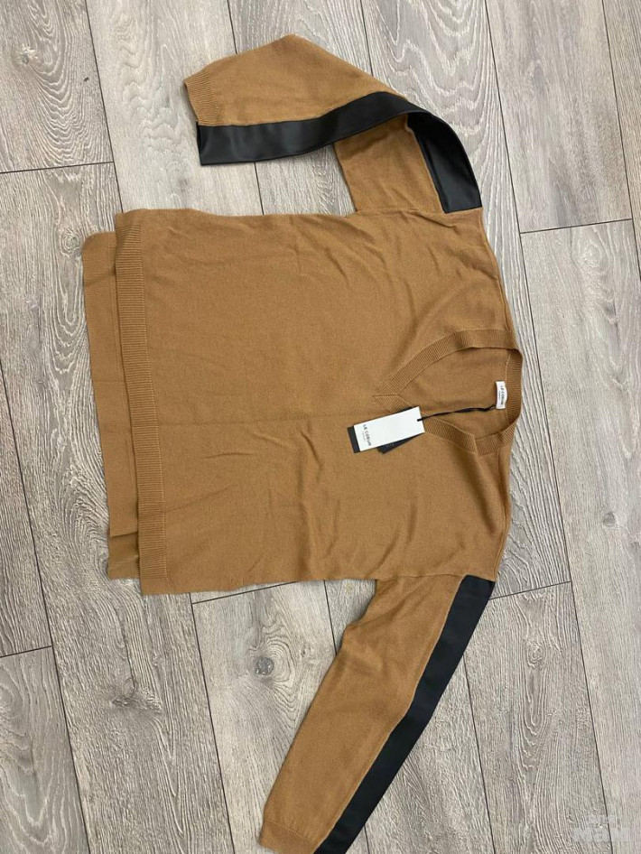 Свитер фирма твинсет размер л цена 5500 руб в образный вырез , на рукавах кожанные вставки