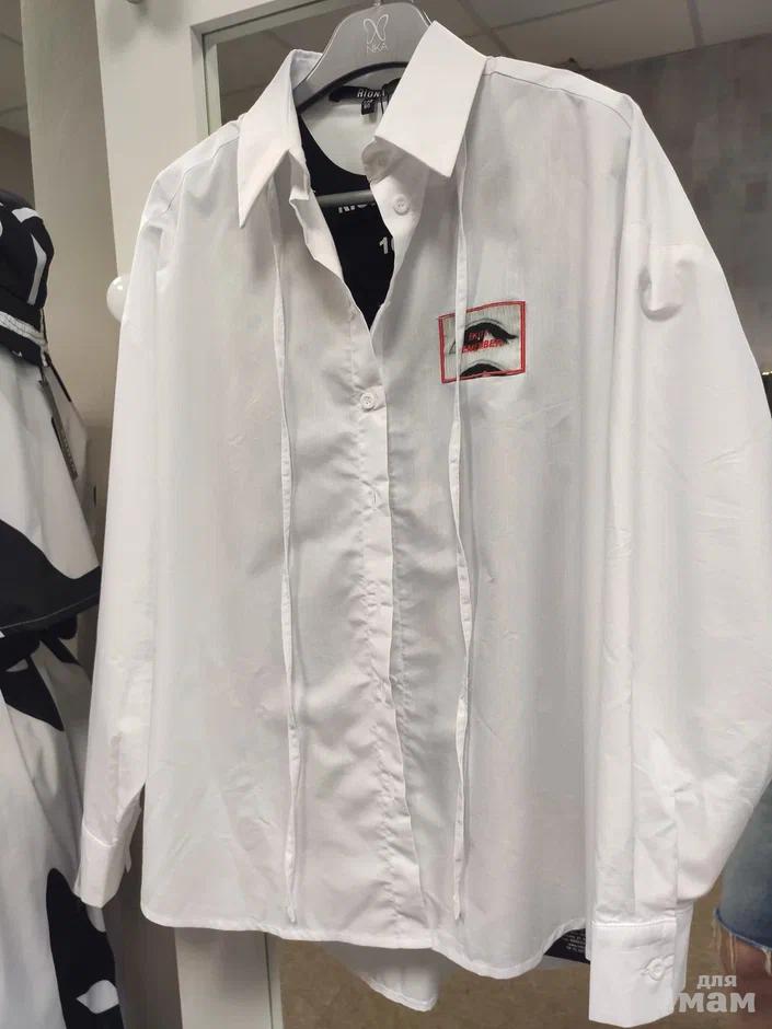 Рубашка умеренный оверсайз,  комфортная ,удобная, с двумя карманами на груди, что защищает от просвечивания, с печатью на воротнике.