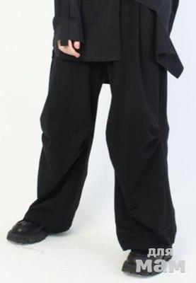 Брюки на резинке с широкими штанинами зауженными к низу и складками на поясе