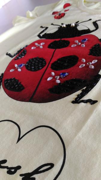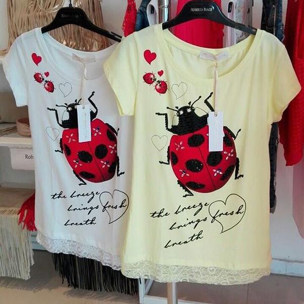 Маечка с декорированной коровкой и гипюром Roberta Biagi Италия
