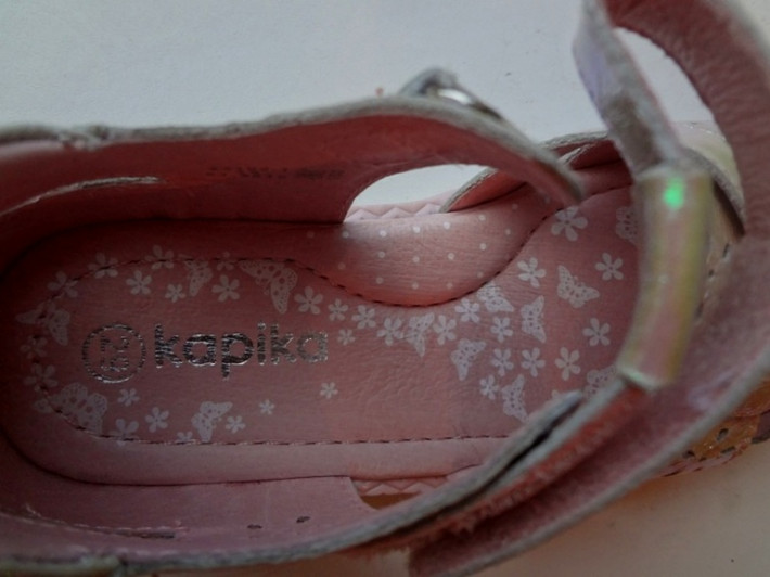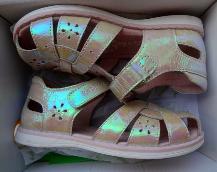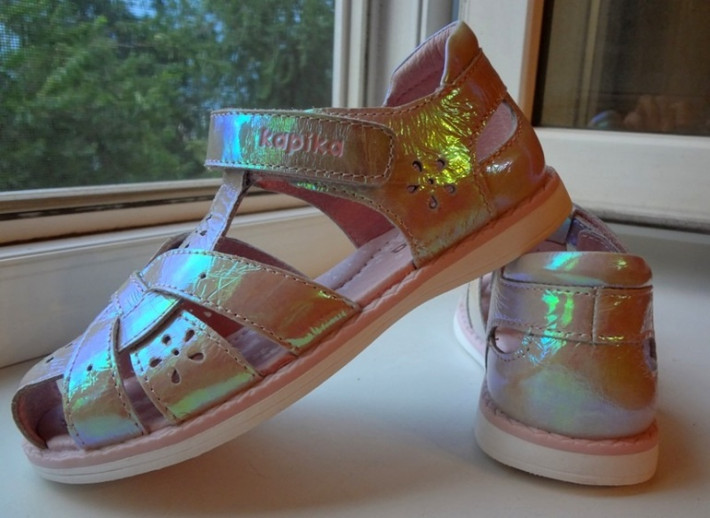Кapika, сандалии НОВЫЕ. Размер 29 ("стелька" от края до края 18,5 см ровно) мои собственноручные замеры. Кожа/лак (мягкие) очень легкие (невесомые) Резиновая подошва (не скользят!) Есть небольшой супинатор (кому важно) Потрясающе аккуратно сидят на ножке)) Изумительно сияют при любом свете. Переросли их.