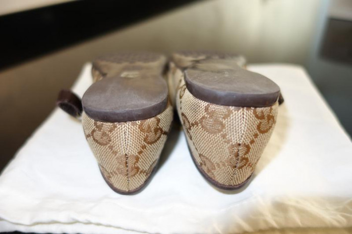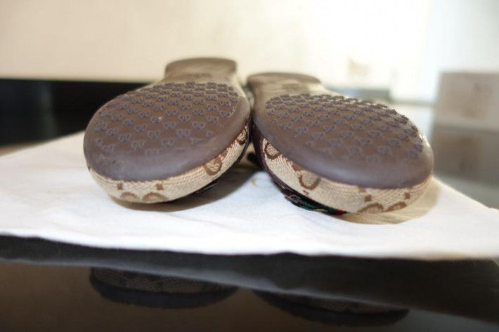 Стелька соответствует заявленной на офиц. сайте 14,7см. На узкую ножку. Коробка, пыльник. Одеты несколько раз в помещении, на улице не гуляли. Материал - кожа/текстиль.