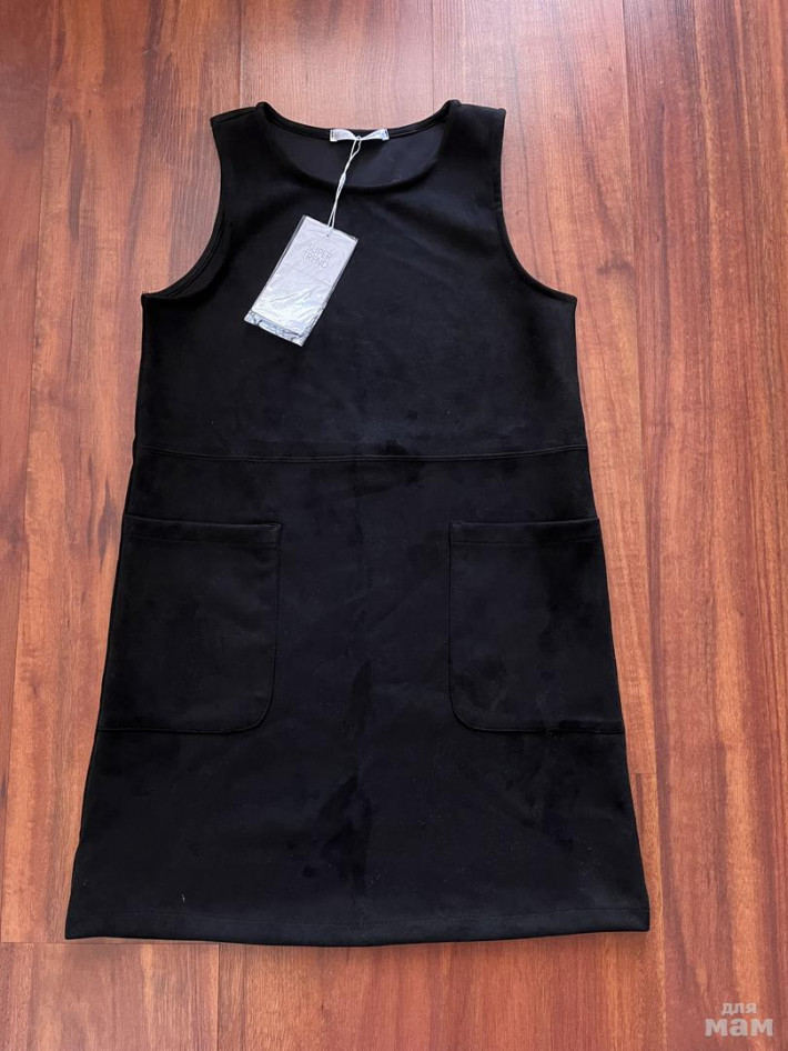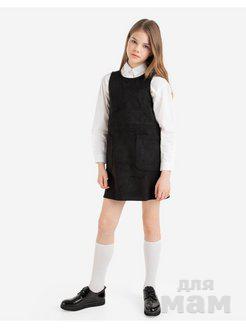 Новый школьный сарафан А-силуэта, смотрится стильно и нарядно. Ткань по типу плотного велюра, держит форму, не мнется. Длина-78, ПОГ-42.