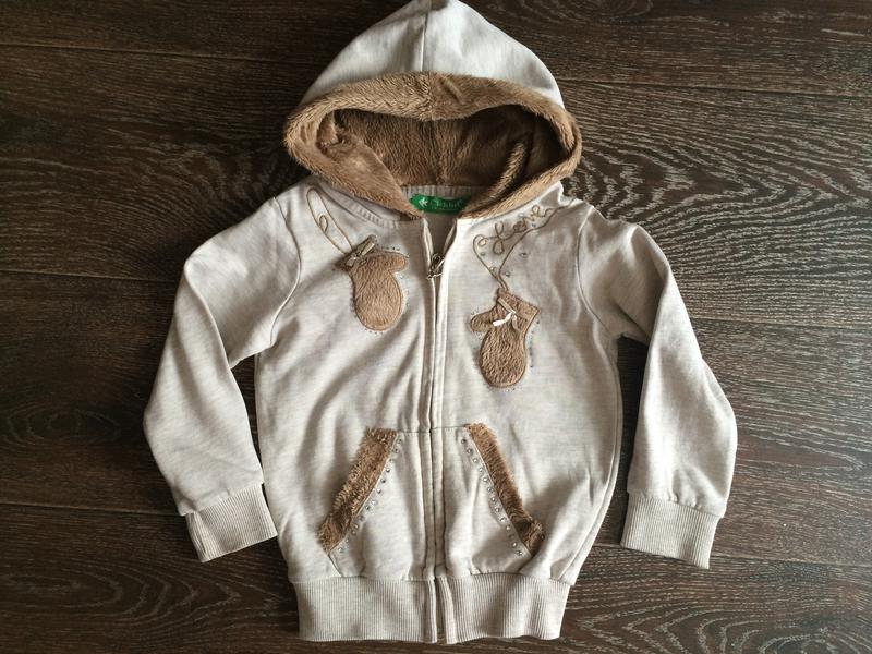 Кофта с капюшоном Chicild, Турция, очень красивая, комфортная, меховушка в капюшоне. Состояние отличное, не хватает несколько страз, в глаза не бросается. Маркировка 24-36мес, до 4 л спокойно. Цена 250руб