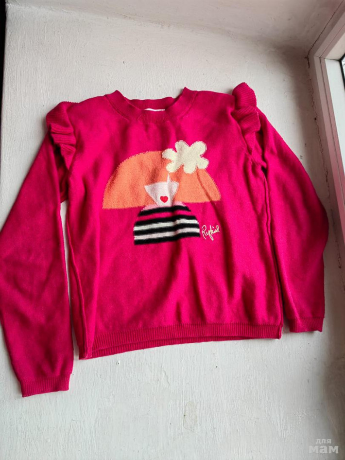 Кофта Sonia Rykiel 6 лет, 100% хлопок на лето.В отличном состояние, очень носибельный трикотаж. Рукав 42 и 34 см до шва, ог 34, длина 40 . Маркировка 6 лет