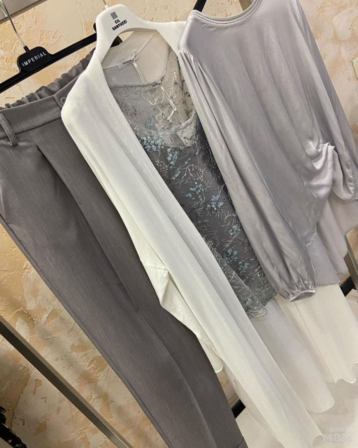 И блузка последняя в цвете серебро на 46-48 размер , можно под заправку в том числе , легкая как пушинка!