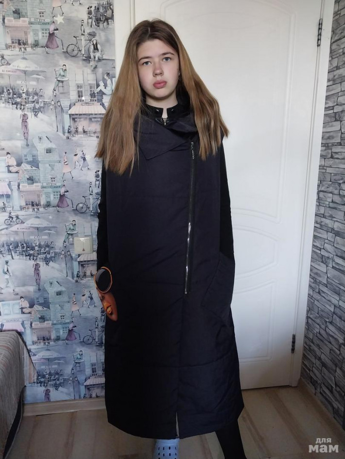 Очень классный утепленный жилет. Интересная модель. Качественный пошив. Модель овер. Сядет на 50 - 54