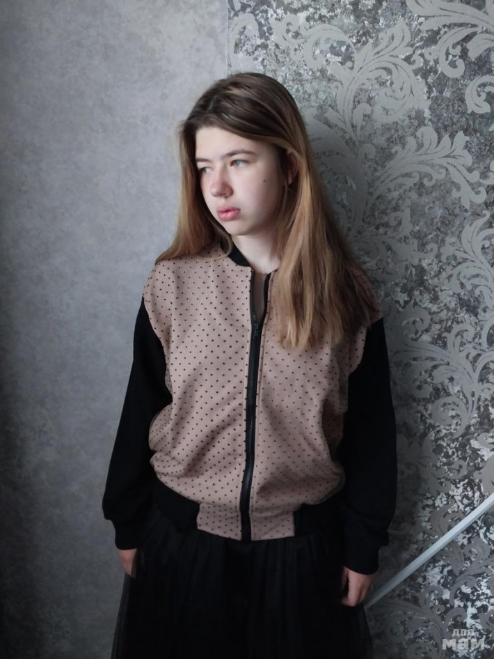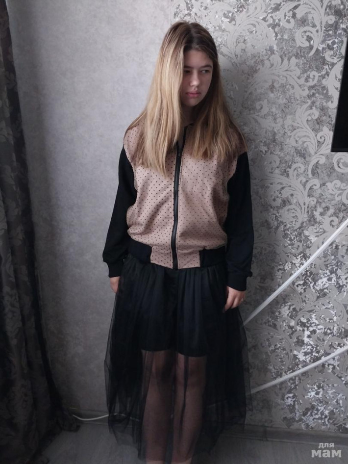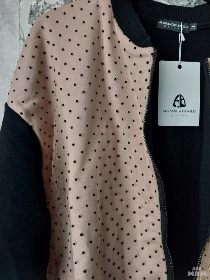 Новый бомбер Borelli Трикотажный, плотный. Спереди отделан мягким фатином в горох. Коллекция спорт шик. Очень красивый)