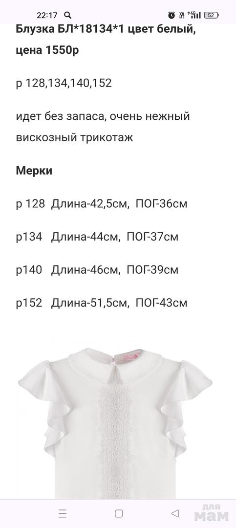 Добрый день, вот такая блузка в размере 152 см осталась?
