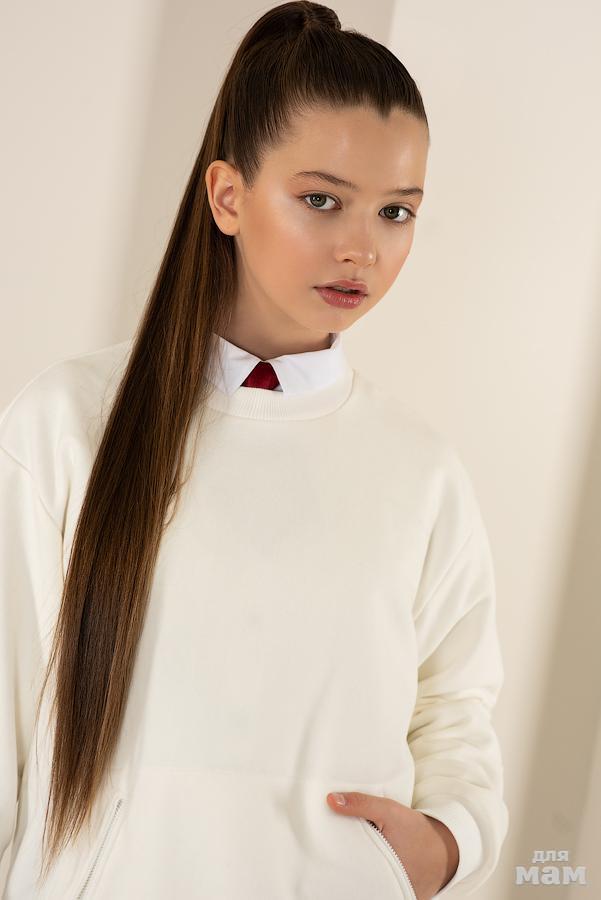 Худи с потайным карманом на молнии Арт.828*25, цена 3760р размер 158, Айвори