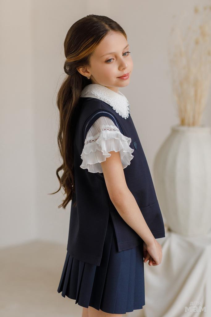 на фото девочка стандарт комплекции, ростом 122, жилет р.122 - запаса почти нет