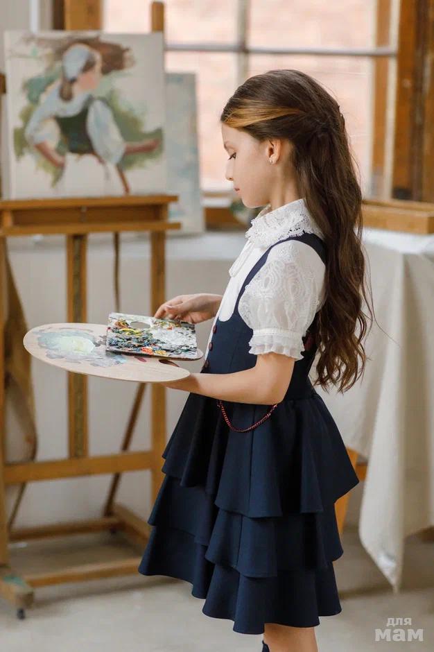 на фото девочка фигура стандарт, рост 125, сарафан р.128