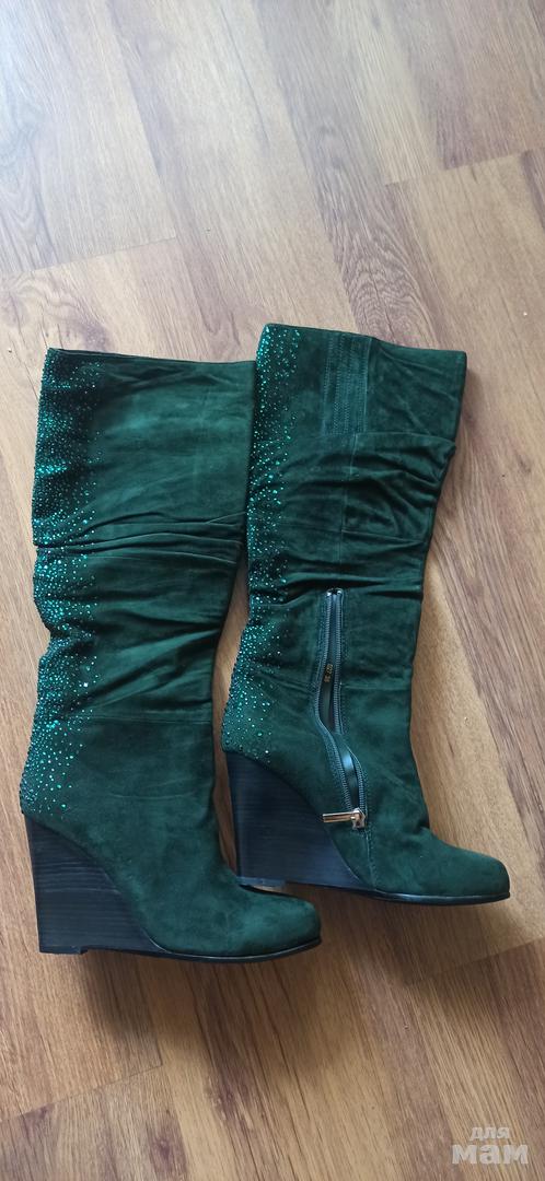Фирма варанес, удобная танкетка 9см, высота 37красивый изумрудный цвет, россыпь страз