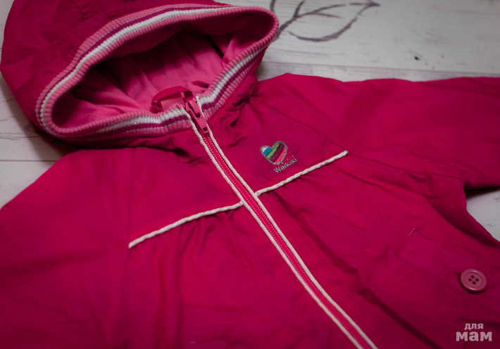 6. Ветровка «Waikiki» с капюшоном. Подкладка — хлопок. Трикотажные манжеты на рукавах, по низу куртки и на капюшоне. Размер 18-24 месяца (86-92 см). Цена 400 руб.
