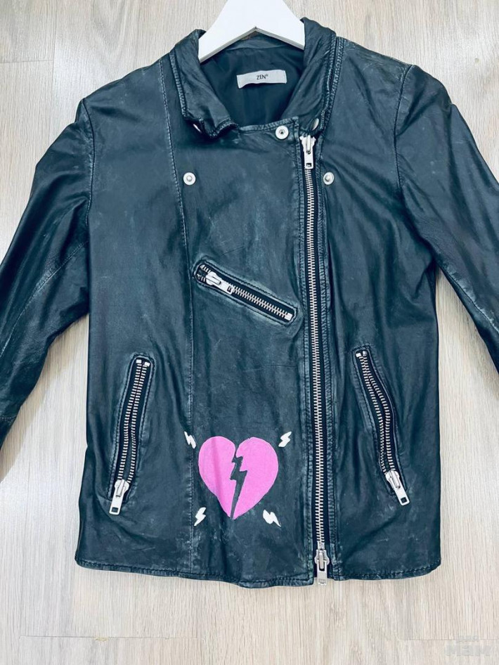 Кожаная стильная итальянская куртка-косуха, рокерская) вся потертая, с молниями и надписями на спине, покупали в Италии. Подойдет очень стройной девочке (девушке), одевалась пару раз, мала, длина 60, рукав 62, талия 40, под мышками 45, 4500 р. (покупали за 16000) СКИДКА 2500 р.